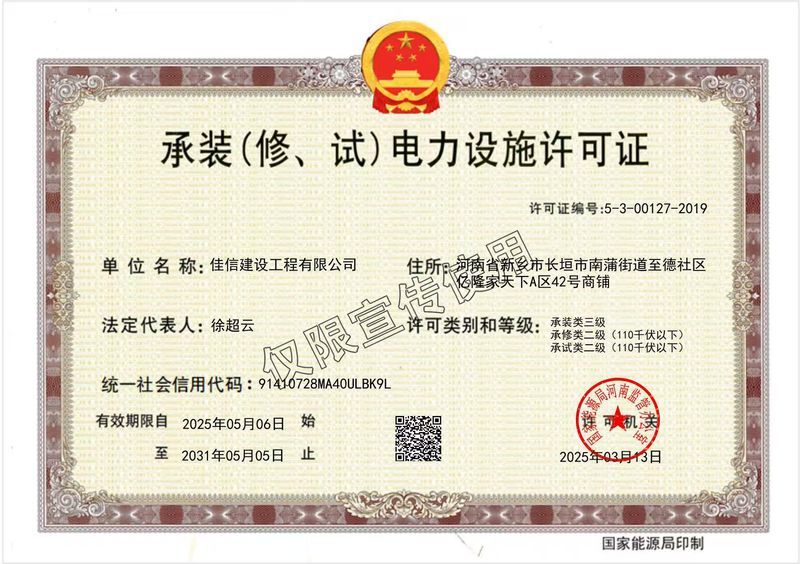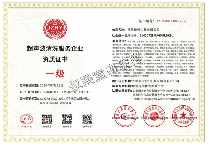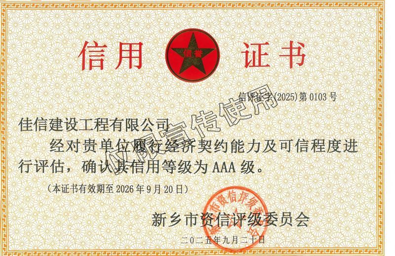 佳信建设工程有限公司于2017年04月正式成立。公司属于股份有限公司企业,取得国家防水防腐保温施工资质企业,具有建筑工程施工总承包、电力工程施工总承包、石油化工工程施工总承包、机电工程施工总承包、地基基础工程承包、钢结构工程承包、建筑机电安装工程承包、环保工程承包、施工劳务、模板脚手架承包等资质,取得ISO9001质量管理体系、ISO14001环境管理体系、GB/T28001职业健康安全管理体系认证。